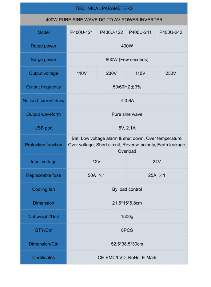 AC Power Interter မှ 400W စင်ကြယ်သော sine wave dc